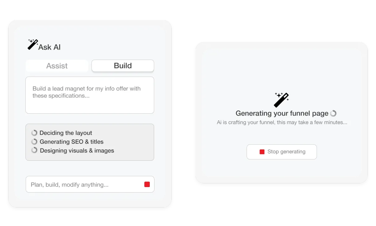 Need high-converting pages without the hassle? Funnels AI creates beautiful, client-ready funnels in seconds. Tweak the design to match your brand, and start turning visitors into paying customers, fast.